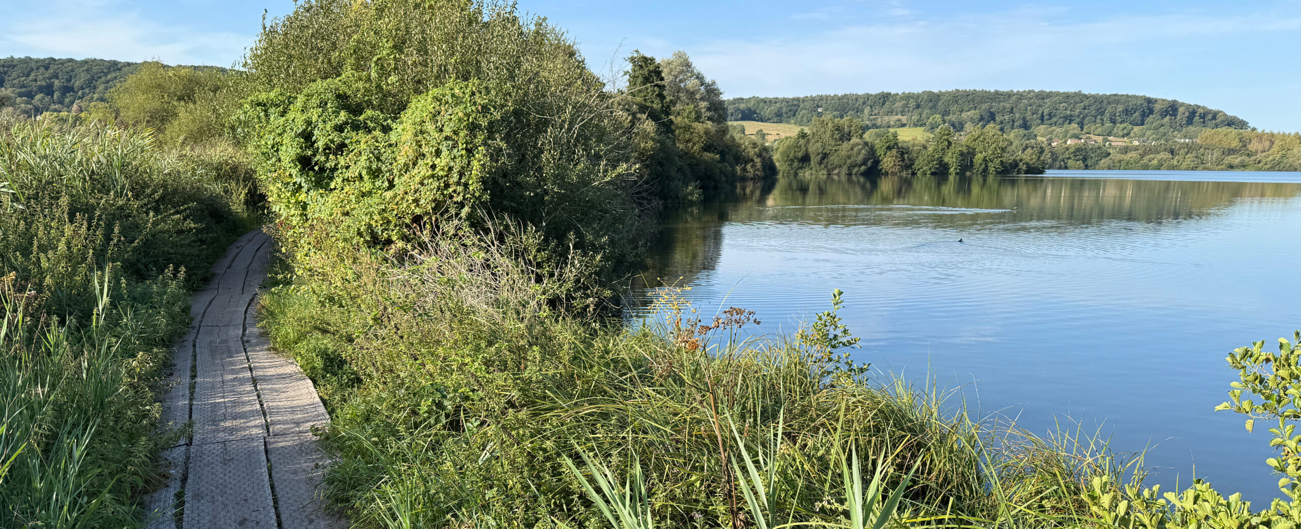 Nous partons de Venables en suivant les balises d’une variante du GR2, puis nous rejoignons la Seine de l’autre côté de la presqu’île de Besnières. Nous traversons Aubevoye par les sentiers aménagés dans le bourg et montons sur la colline boisée dans le parc de l’ancien château de la Créquinière. Nous passons devant la Vierge …